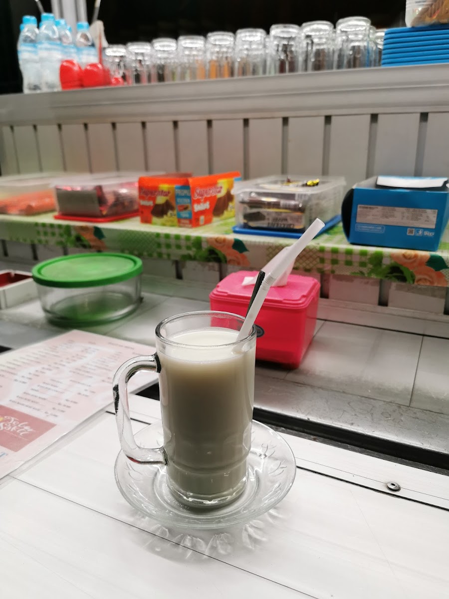 The cafe’s ambient outdoor seating invites you to savor your meal while enjoying the fresh breeze. Imagine sipping on the kental susu (thick milk) mixed with freshly beaten eggs and a hint of ginger, as the flavors meld beautifully, creating a satisfying warmth with every sip. The dim, inviting lighting and casual decor set a perfect backdrop for an informal meal or a catch-up with friends.